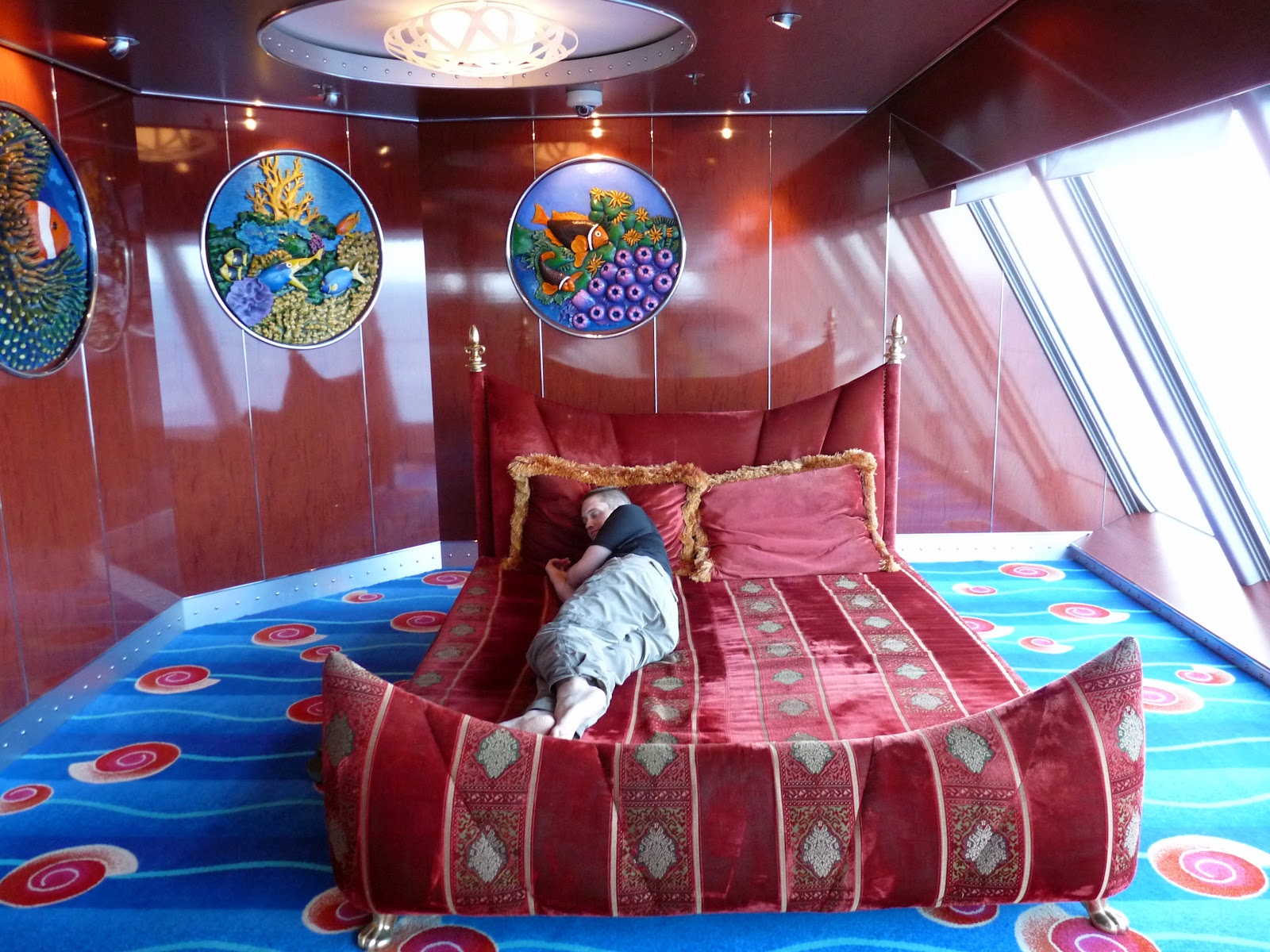It was hard to run out of things to do on such a large ship! For sports fans, there were NFL & college football games available on the in-room TV's and on the giant screen in the atrium, where you could also play Wii games at designated times. If you wanted to work up a sweat, the gym had all the basic equipment or you could sign up for yoga, spinning and more (usually for an extra charge). There were also daily sports competitions on the outdoor sports court or you could bowl a few frames (for a fee). For a more relaxing experience, the spa offered the usual fee-based services or you could swim or hang out in one of the hot tubs. If you wanted to have fun without sweating, you could attend the towel animal or napkin folding classes, learn how to juggle, do arts & crafts projects, and more.